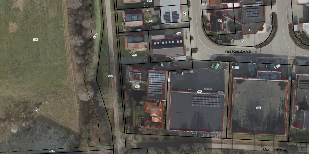 Het perceel waarop van Ruisdaelstraat 9 staat heeft een oppervlakte van 1375 m². Dit is een zeer groot perceel. De perceeloppervlakte wordt geregistreerd door het Kadaster. Gedetailleerde informatie over de maten van dit perceel kunt u vinden in het rapport Kadastrale kaart met maatvoering van van Ruisdaelstraat 9.