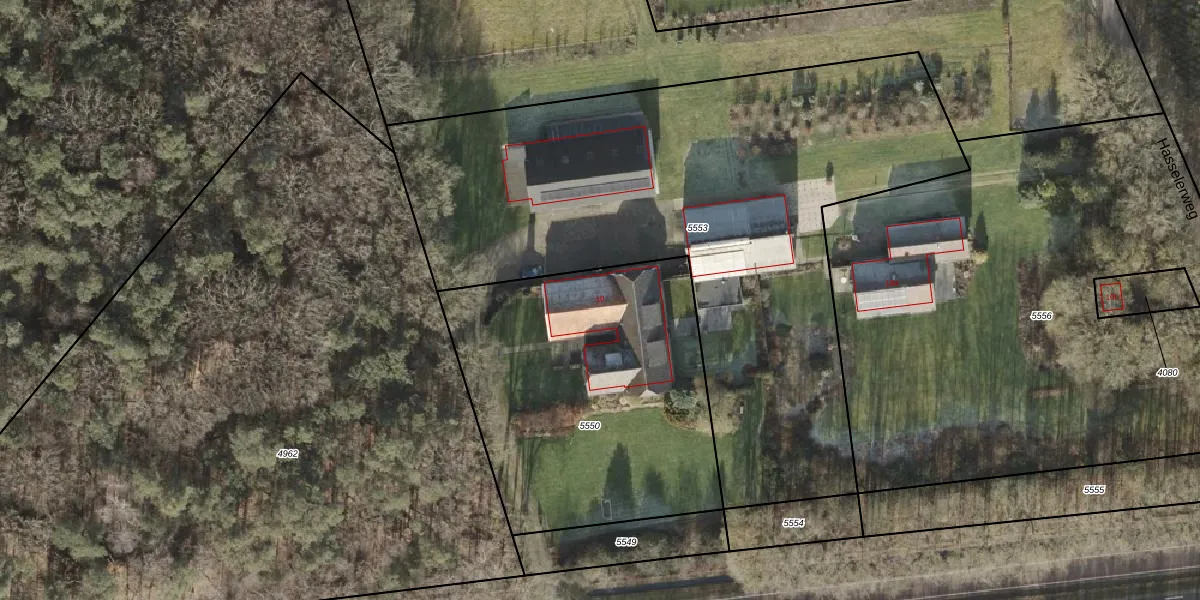 Het adres ligt op het perceel OMN01-A-5550, dat zich in de kadastrale gemeente Ambt-Ommen bevindt. De gemiddelde perceelgrootte in Ambt-Ommen is 1,3 ha. Dit perceel is kleiner: de perceeloppervlakte bedraagt 1640 m². De grootste perceeloppervlakte in de kadastrale gemeente is 2,46 km². De kleinste oppervlakte bedraagt 0 m². Op het perceel bevinden zich geen andere adressen. De huidige grenzen van het perceel zijn digitaal in de Basisregistratie Kadaster (BRK) geregistreerd op 15-12-2015.