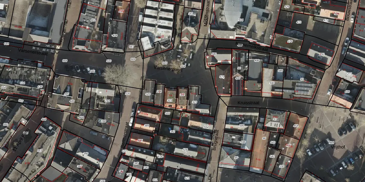 Het perceel waarop Varsenerpoort 7 staat heeft een oppervlakte van 78 m². Dit is een klein perceel. De perceeloppervlakte wordt geregistreerd door het Kadaster. Gedetailleerde informatie over de maten van dit perceel kunt u vinden in het rapport Kadastrale kaart met maatvoering van Varsenerpoort 7.