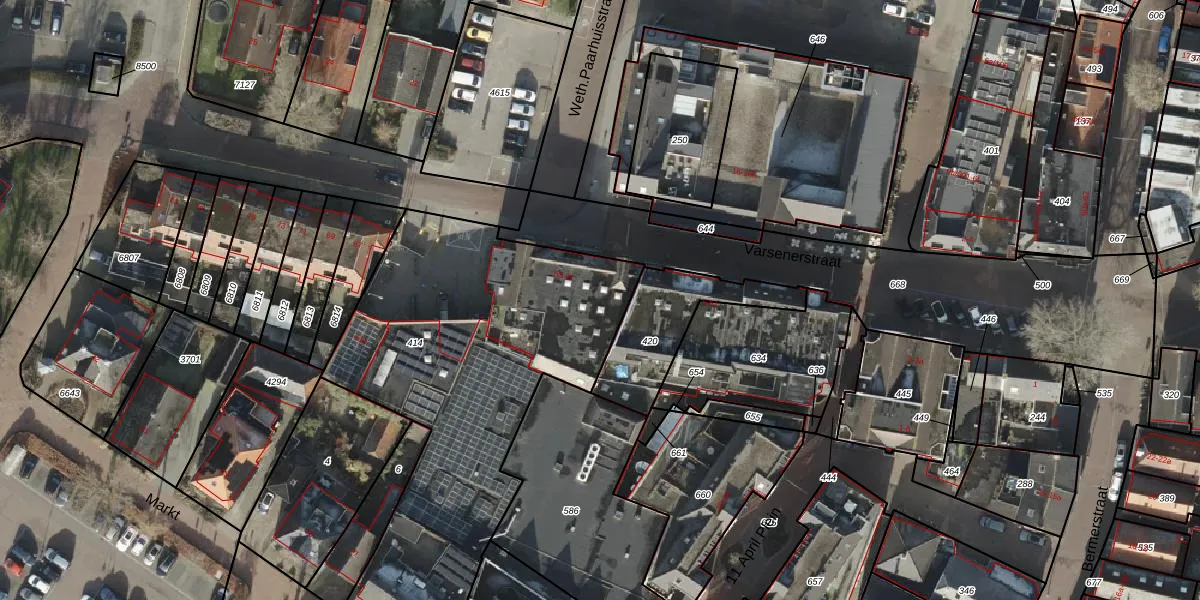 Het perceel waarop Varsenerstraat 55 staat heeft een oppervlakte van 1915 m². Dit is een zeer groot perceel. De perceeloppervlakte wordt geregistreerd door het Kadaster. Gedetailleerde informatie over de maten van dit perceel kunt u vinden in het rapport Kadastrale kaart met maatvoering van Varsenerstraat 55.