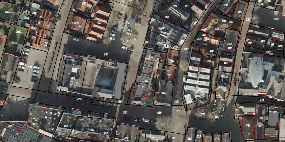 Het perceel waarop Varsenerstraat 6-t staat heeft een oppervlakte van 587 m². Dit is een groot perceel. De perceeloppervlakte wordt geregistreerd door het Kadaster. Gedetailleerde informatie over de maten van dit perceel kunt u vinden in het rapport Kadastrale kaart met maatvoering van Varsenerstraat 6-t.