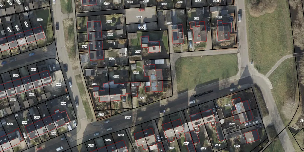 Het perceel waarop Violenstraat 47 staat heeft een oppervlakte van 385 m². Dit is een groot perceel. De perceeloppervlakte wordt geregistreerd door het Kadaster. Gedetailleerde informatie over de maten van dit perceel kunt u vinden in het rapport Kadastrale kaart met maatvoering van Violenstraat 47.