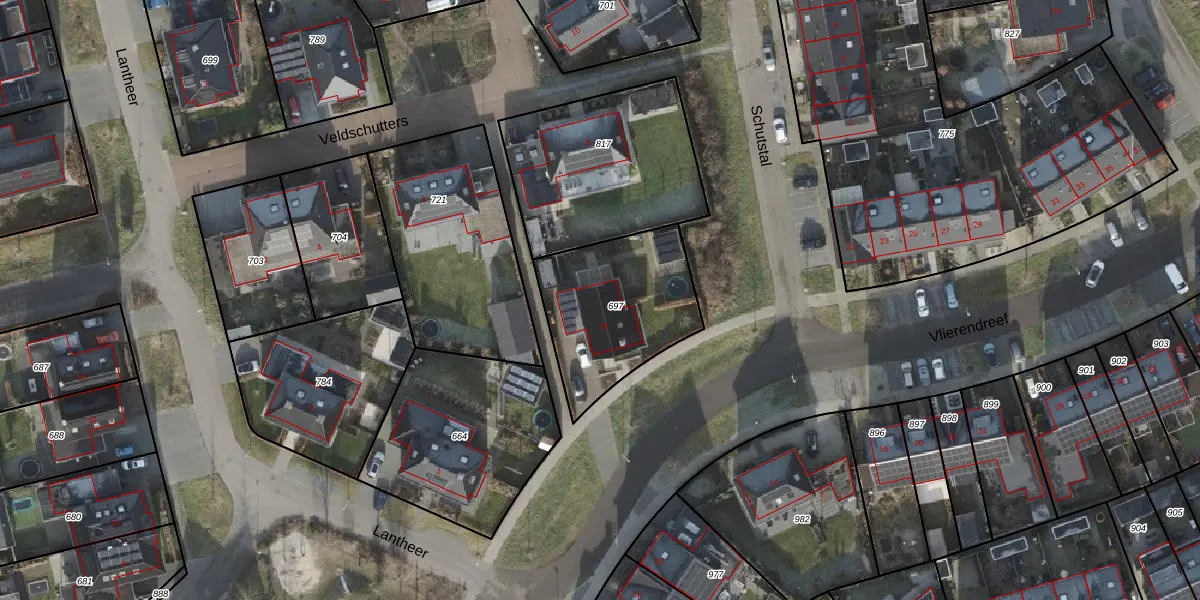 Het perceel waarop Vlierendreef 19 staat heeft een oppervlakte van 555 m². Dit is een groot perceel. De perceeloppervlakte wordt geregistreerd door het Kadaster. Gedetailleerde informatie over de maten van dit perceel kunt u vinden in het rapport Kadastrale kaart met maatvoering van Vlierendreef 19.