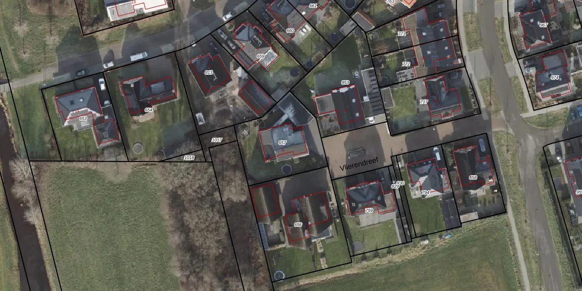 Vlierendreef 9 is gelegen op kadastraal perceel OMN01O657. Deze kadastrale aanduiding is uniek en wordt gebruikt door het Kadaster om eigendomsrechten en andere zakelijke rechten vast te leggen. Het perceel maakt onderdeel uit van de kadastrale gemeente Ambt-Ommen.