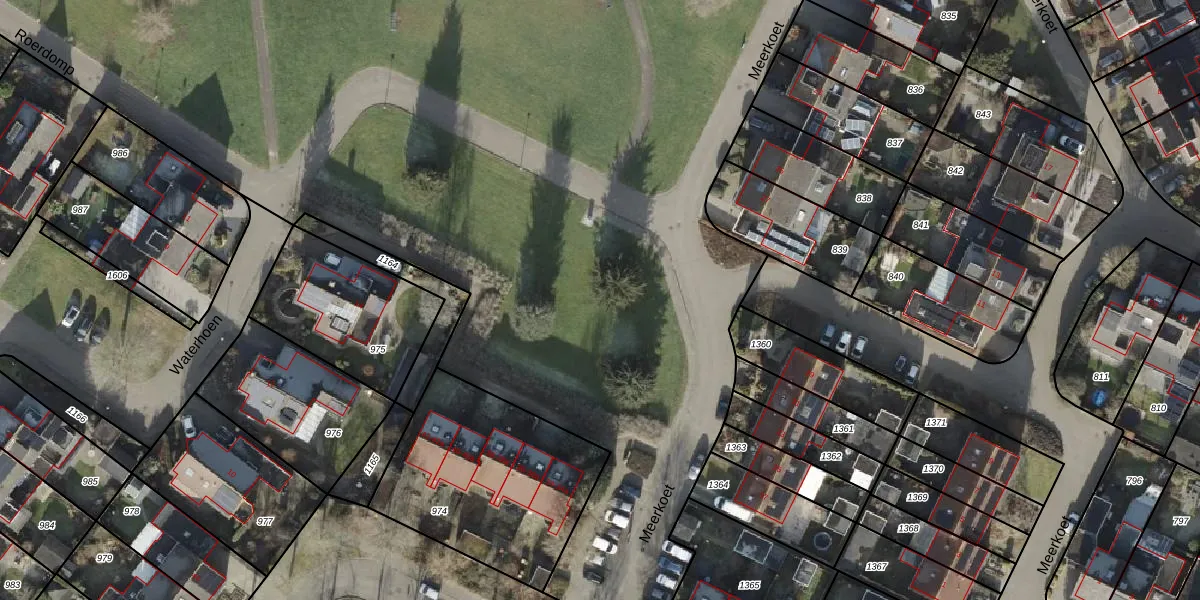 Het perceel waarop Waterhoen 24 staat heeft een oppervlakte van 3,3 ha. Dit is een zeer groot perceel. De perceeloppervlakte wordt geregistreerd door het Kadaster. Gedetailleerde informatie over de maten van dit perceel kunt u vinden in het rapport Kadastrale kaart met maatvoering van Waterhoen 24.