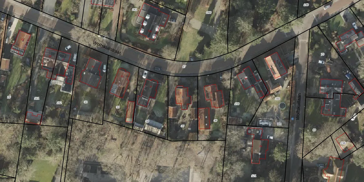 Het perceel waarop Wolfskuilstraat 7 staat heeft een oppervlakte van 585 m². Dit is een groot perceel. De perceeloppervlakte wordt geregistreerd door het Kadaster. Gedetailleerde informatie over de maten van dit perceel kunt u vinden in het rapport Kadastrale kaart met maatvoering van Wolfskuilstraat 7.