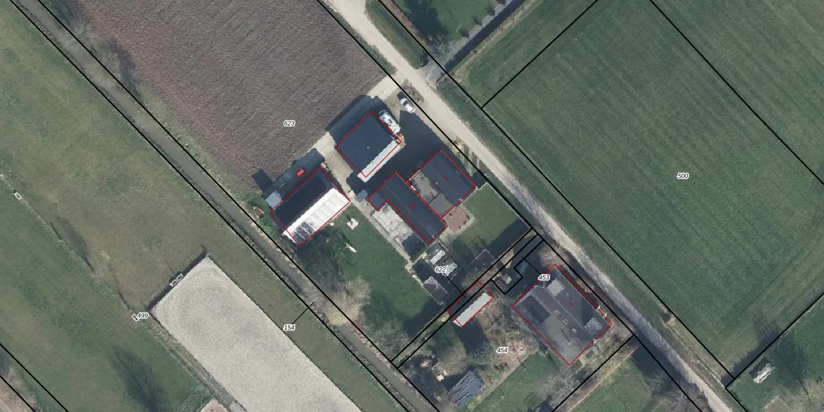 Het adres is gelegen op perceel 623 in de sectie O en de kadastrale gemeente Lienden. De kadastrale aanduiding is aldus LDN04-O-623. De gemiddelde perceeloppervlakte in de kadastrale gemeente Lienden is 5567,5 m². Dit perceel is met zijn 6140 m² dus groter dan gemiddeld. De grootste perceeloppervlakte in de kadastrale gemeente is 32,2 ha. De kleinste oppervlakte bedraagt 0 m². Er zijn 2 adressen aanwezig op het perceel. De huidige grenzen van het perceel zijn digitaal in de Basisregistratie Kadaster (BRK) geregistreerd op 24-05-2002.