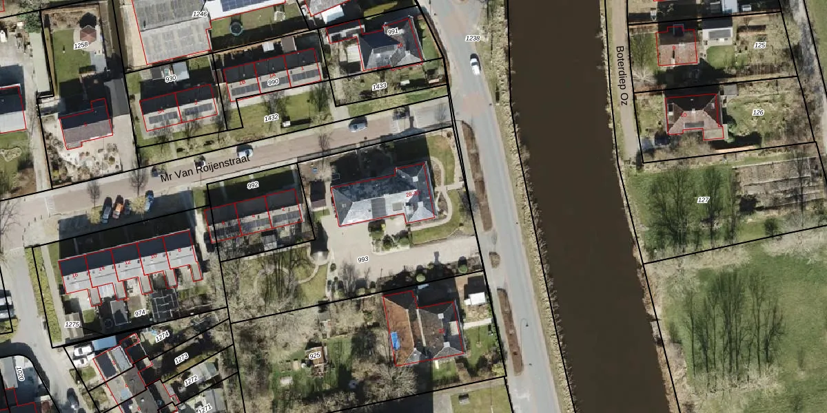 Het adres ligt op het perceel BDM00-B-993, dat zich in de kadastrale gemeente Bedum bevindt. Het perceel is kleiner dan gemiddeld in Bedum. Het perceel is 1625 m² groot, terwijl het gemiddelde ligt op 7156,39 m². Het grootste perceel in de kadastrale gemeente is 66,7 ha. Het kleinste perceel heeft een oppervlakte van 0 m². Op het perceel zijn 2 adressen aanwezig. De huidige grenzen van het perceel zijn digitaal in de Basisregistratie Kadaster (BRK) geregistreerd op 01-11-2007.