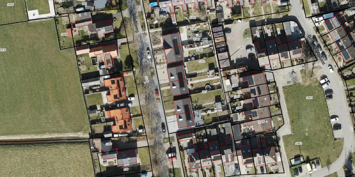 Stadsweg 16 is gelegen op kadastraal perceel BDM00B917. Deze kadastrale aanduiding is uniek en wordt gebruikt door het Kadaster om eigendomsrechten en andere zakelijke rechten vast te leggen. Het perceel maakt onderdeel uit van de kadastrale gemeente Bedum.