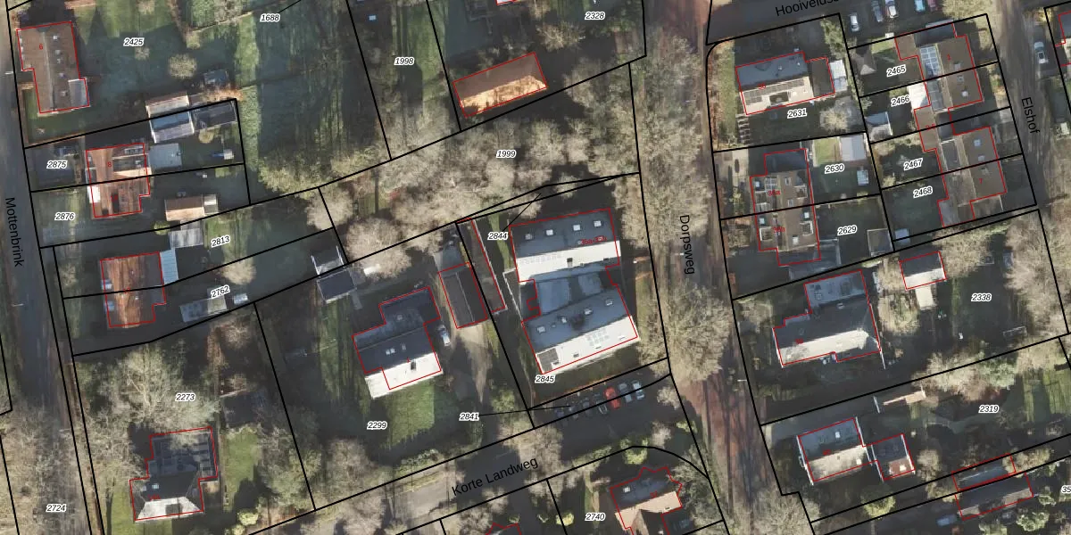 Dorpsweg 35-b is gelegen op kadastraal perceel HRN01G2845. Deze kadastrale aanduiding is uniek en wordt gebruikt door het Kadaster om eigendomsrechten en andere zakelijke rechten vast te leggen. Het perceel maakt onderdeel uit van de kadastrale gemeente Haren.
