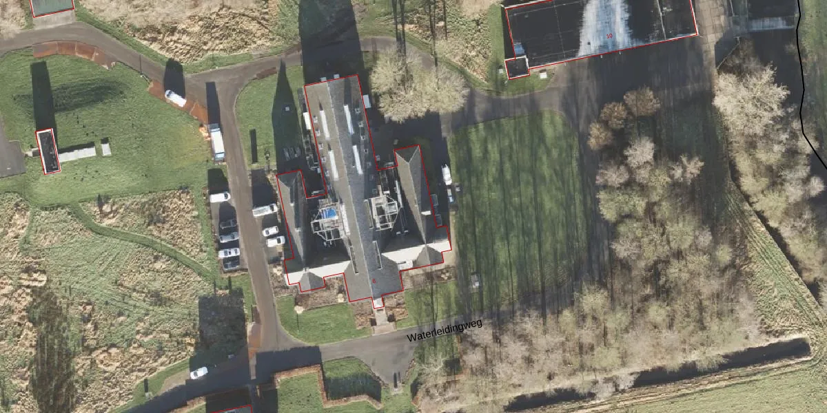 Het perceel waarop Waterleidingweg 8 staat heeft een oppervlakte van 24,2 ha. Dit is een zeer groot perceel. De perceeloppervlakte wordt geregistreerd door het Kadaster. Gedetailleerde informatie over de maten van dit perceel kunt u vinden in het rapport Kadastrale kaart met maatvoering van Waterleidingweg 8.