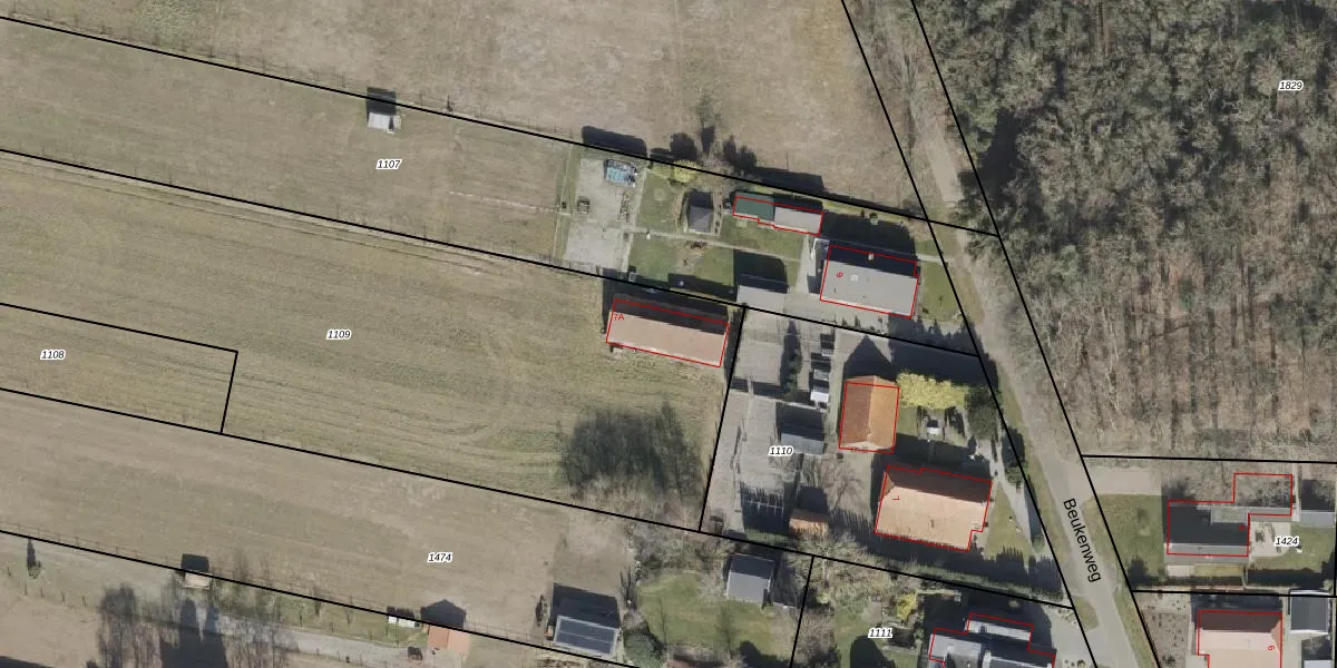 Het perceel waarop Beukenweg 7-A staat heeft een oppervlakte van 3715 m². Dit is een zeer groot perceel. De perceeloppervlakte wordt geregistreerd door het Kadaster. Gedetailleerde informatie over de maten van dit perceel kunt u vinden in het rapport Kadastrale kaart met maatvoering van Beukenweg 7-A.