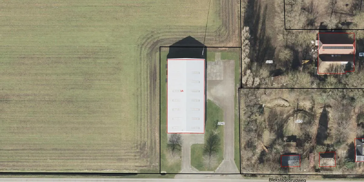 Blekslagebrugweg 1-A is gelegen op kadastraal perceel OWD00W2242. Deze kadastrale aanduiding is uniek en wordt gebruikt door het Kadaster om eigendomsrechten en andere zakelijke rechten vast te leggen. Het perceel maakt onderdeel uit van de kadastrale gemeente Onstwedde.
