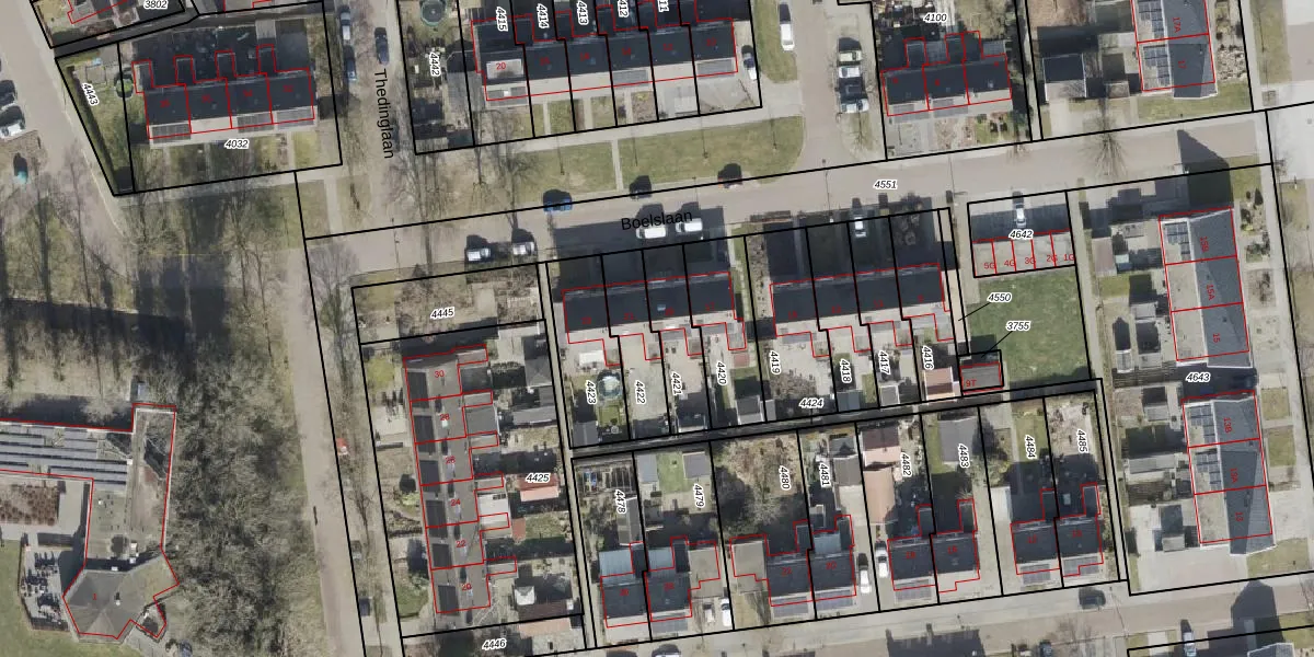 Het perceel waarop Boelslaan 19 staat heeft een oppervlakte van 179 m². Dit is een middelgroot perceel. De perceeloppervlakte wordt geregistreerd door het Kadaster. Gedetailleerde informatie over de maten van dit perceel kunt u vinden in het rapport Kadastrale kaart met maatvoering van Boelslaan 19.