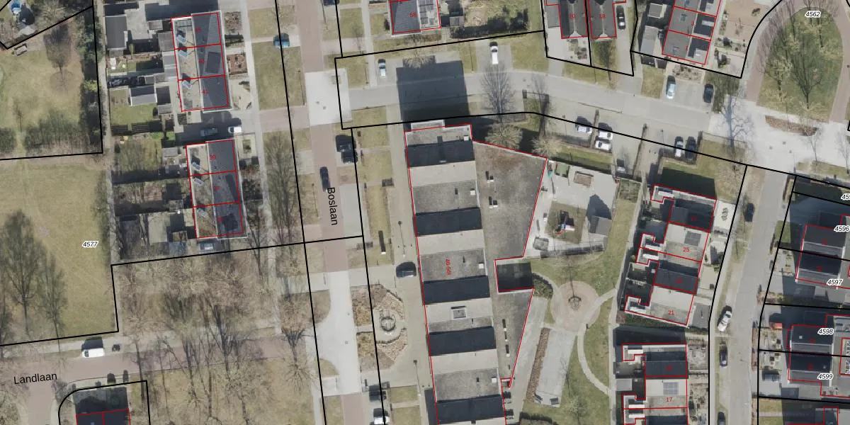 Boslaan 54-G is gelegen op kadastraal perceel OWD00E3750. Deze kadastrale aanduiding is uniek en wordt gebruikt door het Kadaster om eigendomsrechten en andere zakelijke rechten vast te leggen. Het perceel maakt onderdeel uit van de kadastrale gemeente Onstwedde.