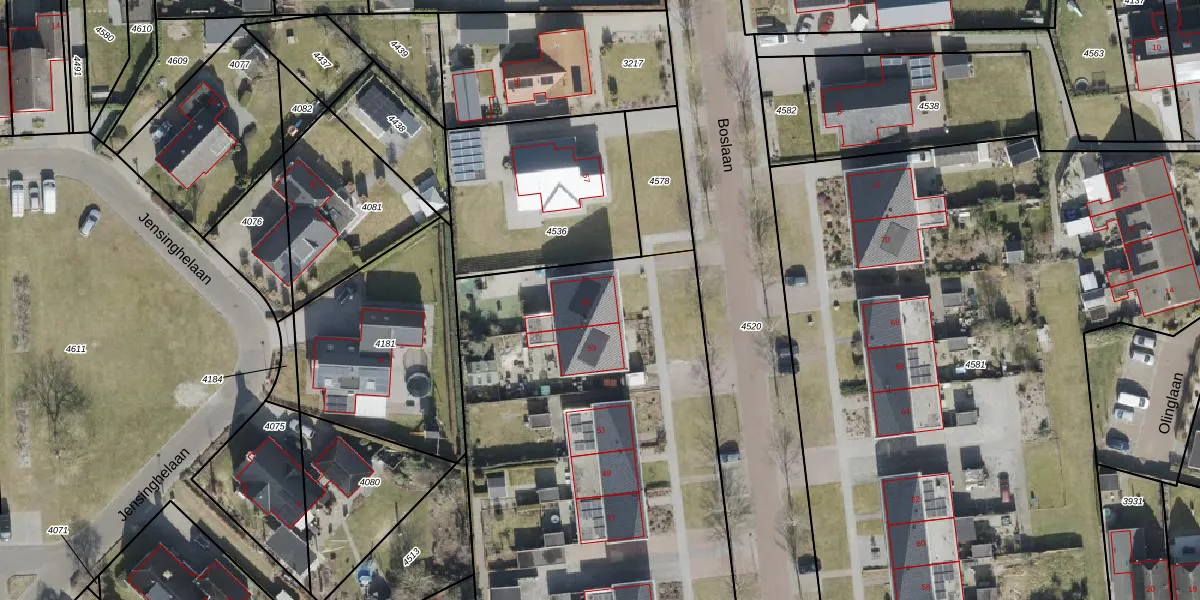Boslaan 55 is gelegen op kadastraal perceel OWD00E4577. Deze kadastrale aanduiding is uniek en wordt gebruikt door het Kadaster om eigendomsrechten en andere zakelijke rechten vast te leggen. Het perceel maakt onderdeel uit van de kadastrale gemeente Onstwedde.