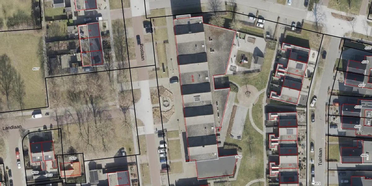 Boslaan 56-E is gelegen op kadastraal perceel OWD00E3750. Deze kadastrale aanduiding is uniek en wordt gebruikt door het Kadaster om eigendomsrechten en andere zakelijke rechten vast te leggen. Het perceel maakt onderdeel uit van de kadastrale gemeente Onstwedde.