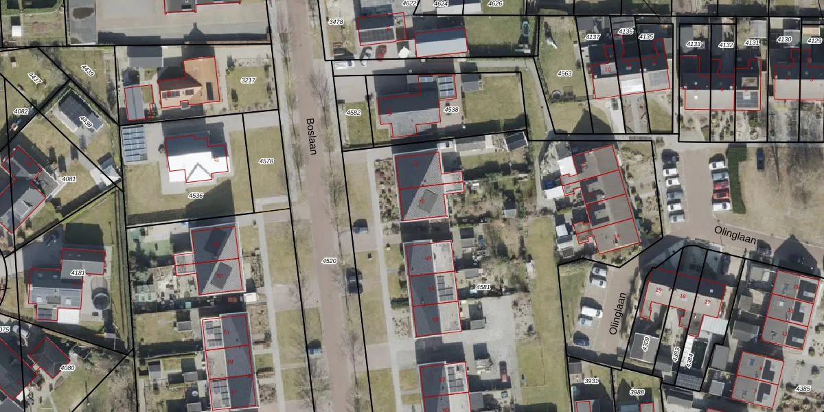 Het perceel waarop Boslaan 70 staat heeft een oppervlakte van 4600 m². Dit is een zeer groot perceel. De perceeloppervlakte wordt geregistreerd door het Kadaster. Gedetailleerde informatie over de maten van dit perceel kunt u vinden in het rapport Kadastrale kaart met maatvoering van Boslaan 70.