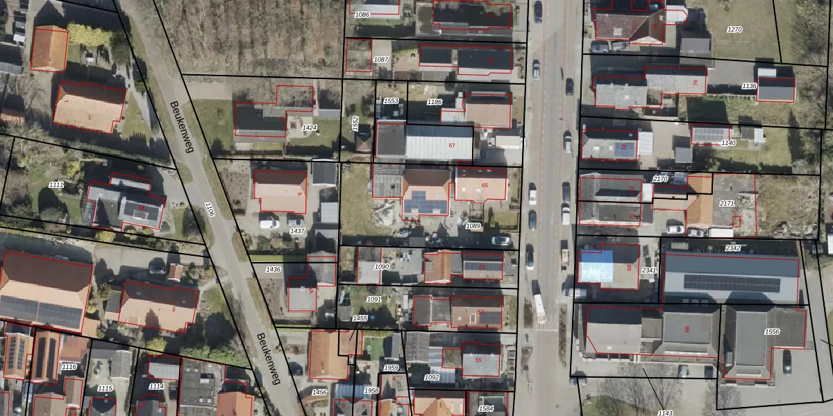 Gebruik de zoekbalk of klik op een perceel voor informatie over de adressen binnen dit perceel.