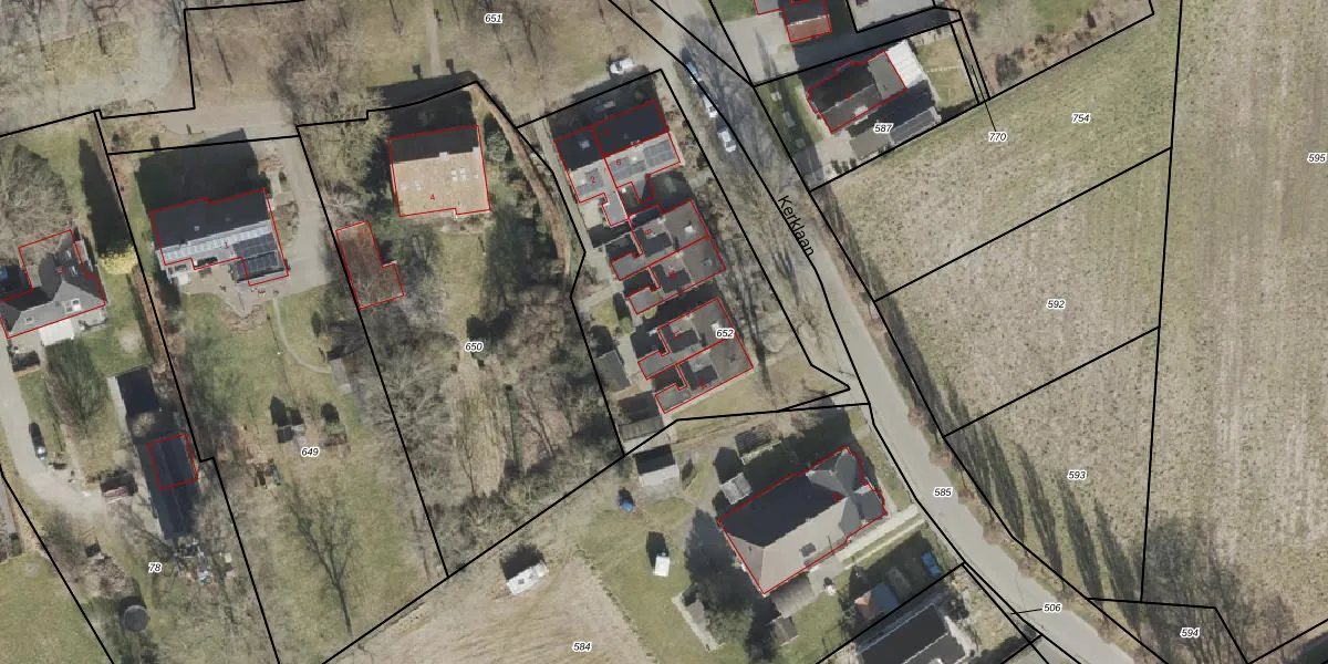 Kerklaan 12 is gelegen op kadastraal perceel OWD00T652. Deze kadastrale aanduiding is uniek en wordt gebruikt door het Kadaster om eigendomsrechten en andere zakelijke rechten vast te leggen. Het perceel maakt onderdeel uit van de kadastrale gemeente Onstwedde.