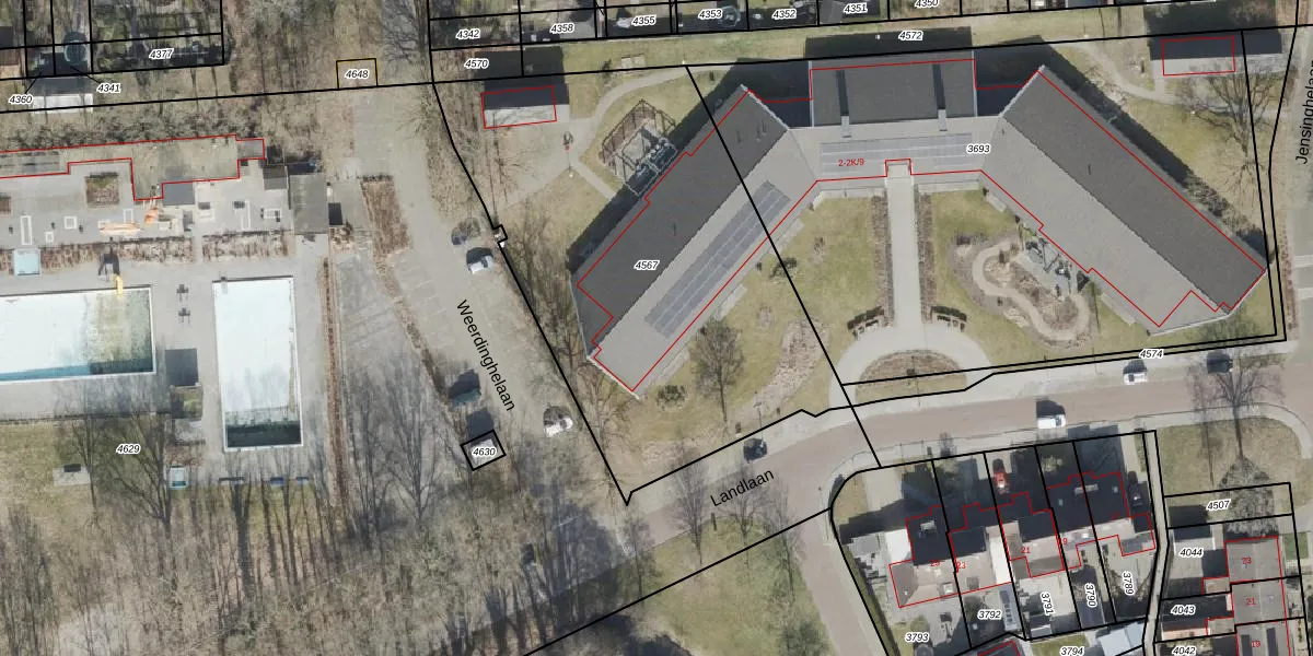 Landlaan 2-K-6 is gelegen op kadastraal perceel OWD00E4567. Deze kadastrale aanduiding is uniek en wordt gebruikt door het Kadaster om eigendomsrechten en andere zakelijke rechten vast te leggen. Het perceel maakt onderdeel uit van de kadastrale gemeente Onstwedde.