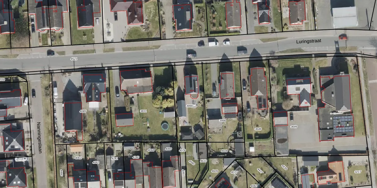 Het perceel waarop Luringstraat 43-A staat heeft een oppervlakte van 660 m². Dit is een groot perceel. De perceeloppervlakte wordt geregistreerd door het Kadaster. Gedetailleerde informatie over de maten van dit perceel kunt u vinden in het rapport Kadastrale kaart met maatvoering van Luringstraat 43-A.