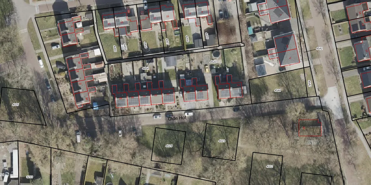 Het perceel waarop Olde Hof 18 staat heeft een oppervlakte van 5158 m². Dit is een zeer groot perceel. De perceeloppervlakte wordt geregistreerd door het Kadaster. Gedetailleerde informatie over de maten van dit perceel kunt u vinden in het rapport Kadastrale kaart met maatvoering van Olde Hof 18.