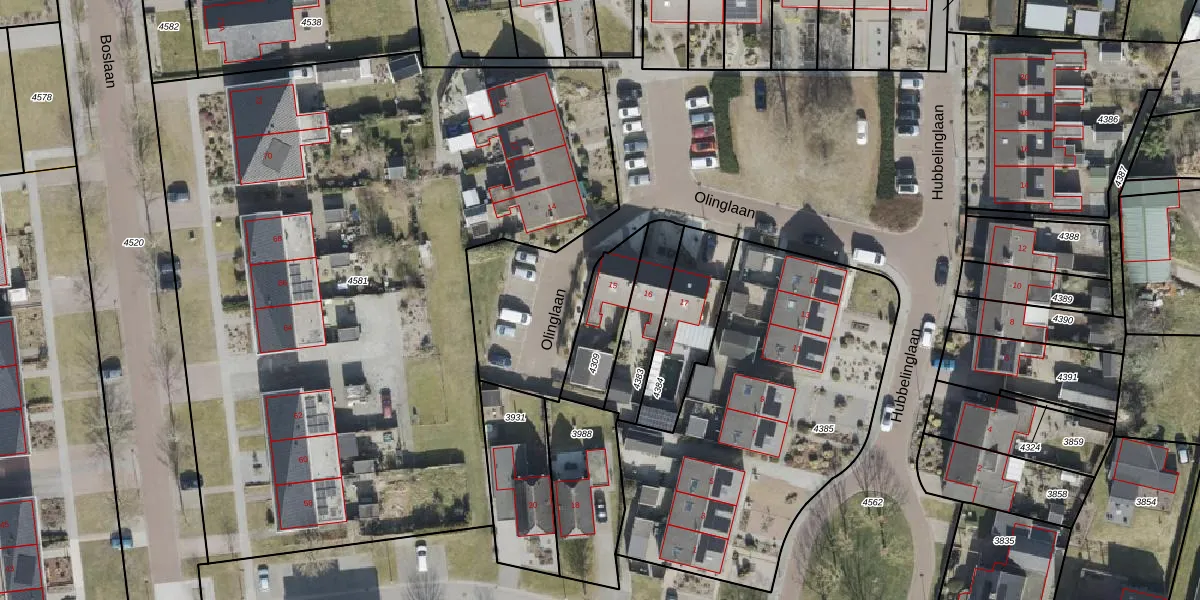 Het perceel waarop Olinglaan 15 staat heeft een oppervlakte van 200 m². Dit is een middelgroot perceel. De perceeloppervlakte wordt geregistreerd door het Kadaster. Gedetailleerde informatie over de maten van dit perceel kunt u vinden in het rapport Kadastrale kaart met maatvoering van Olinglaan 15.