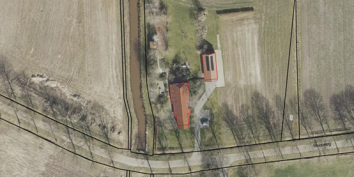 Sluisweg 7 is gelegen op kadastraal perceel OWD00T499. Deze kadastrale aanduiding is uniek en wordt gebruikt door het Kadaster om eigendomsrechten en andere zakelijke rechten vast te leggen. Het perceel maakt onderdeel uit van de kadastrale gemeente Onstwedde.
