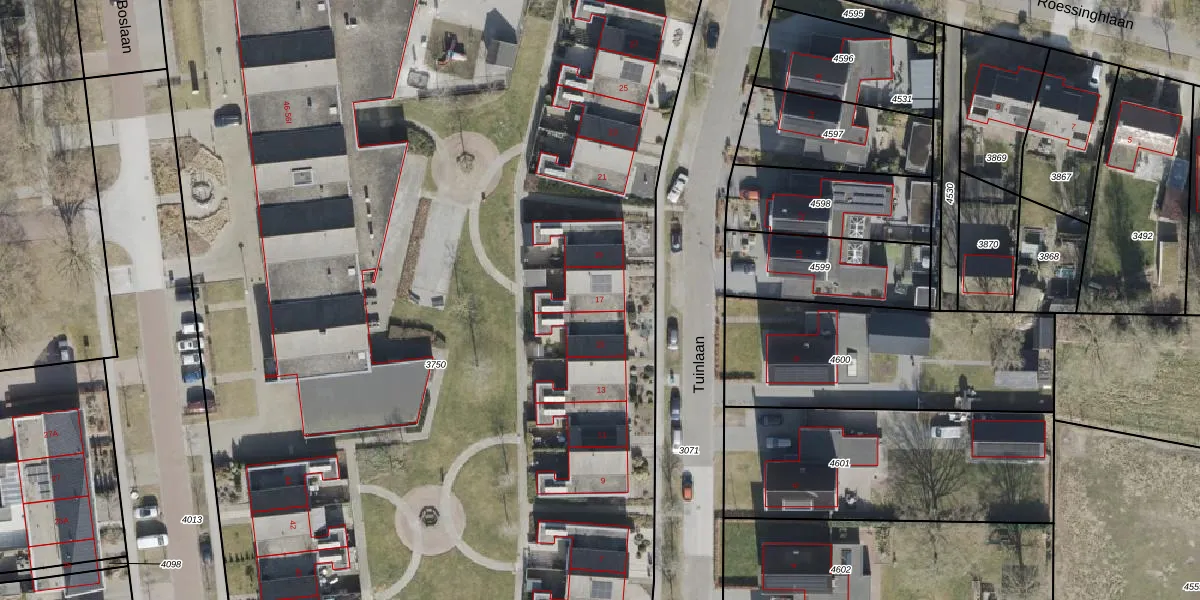 Het perceel waarop Tuinlaan 17 staat heeft een oppervlakte van 1,0 ha. Dit is een zeer groot perceel. De perceeloppervlakte wordt geregistreerd door het Kadaster. Gedetailleerde informatie over de maten van dit perceel kunt u vinden in het rapport Kadastrale kaart met maatvoering van Tuinlaan 17.