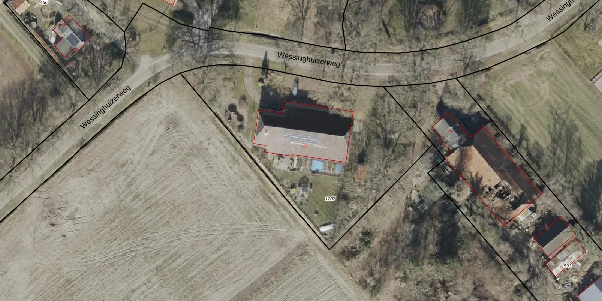 Wessinghuizerweg 17 is gelegen op kadastraal perceel OWD00R1207. Deze kadastrale aanduiding is uniek en wordt gebruikt door het Kadaster om eigendomsrechten en andere zakelijke rechten vast te leggen. Het perceel maakt onderdeel uit van de kadastrale gemeente Onstwedde.