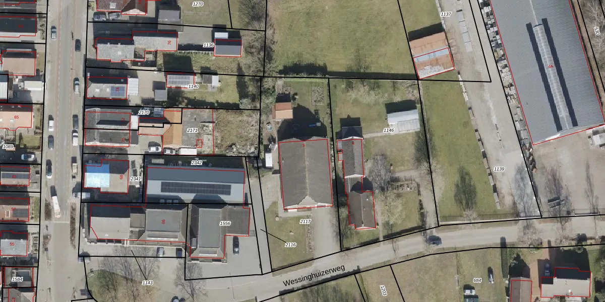 Het perceel waarop Wessinghuizerweg 3 staat heeft een oppervlakte van 1480 m². Dit is een zeer groot perceel. De perceeloppervlakte wordt geregistreerd door het Kadaster. Gedetailleerde informatie over de maten van dit perceel kunt u vinden in het rapport Kadastrale kaart met maatvoering van Wessinghuizerweg 3.