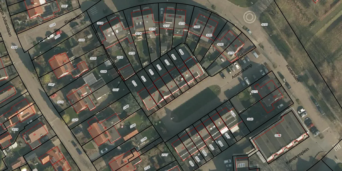 Adamskamp 8 is gelegen op kadastraal perceel OOI00B3171. Deze kadastrale aanduiding is uniek en wordt gebruikt door het Kadaster om eigendomsrechten en andere zakelijke rechten vast te leggen. Het perceel maakt onderdeel uit van de kadastrale gemeente Ooij.