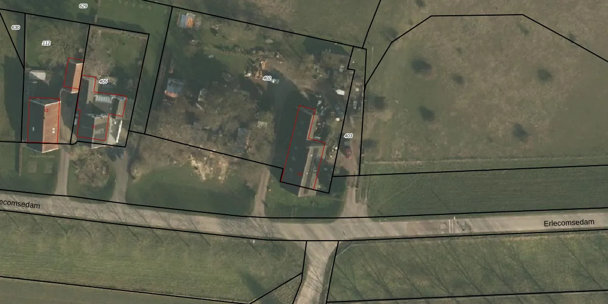 Erlecomsedam 19 is gelegen op kadastraal perceel OOI00F402. Deze kadastrale aanduiding is uniek en wordt gebruikt door het Kadaster om eigendomsrechten en andere zakelijke rechten vast te leggen. Het perceel maakt onderdeel uit van de kadastrale gemeente Ooij.