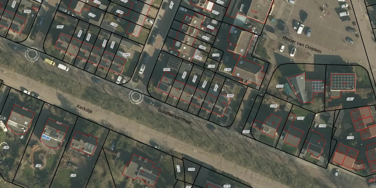 Goudwindestraat 27 is gelegen op kadastraal perceel OOI00B2889. Deze kadastrale aanduiding is uniek en wordt gebruikt door het Kadaster om eigendomsrechten en andere zakelijke rechten vast te leggen. Het perceel maakt onderdeel uit van de kadastrale gemeente Ooij.
