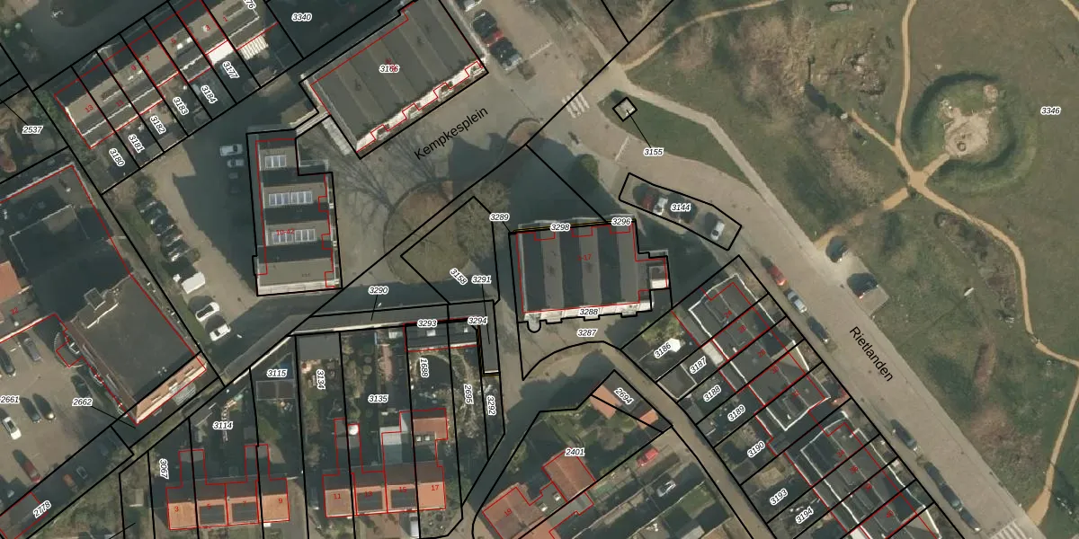 Kempkesplein 11 is gelegen op kadastraal perceel OOI00B3288. Deze kadastrale aanduiding is uniek en wordt gebruikt door het Kadaster om eigendomsrechten en andere zakelijke rechten vast te leggen. Het perceel maakt onderdeel uit van de kadastrale gemeente Ooij.