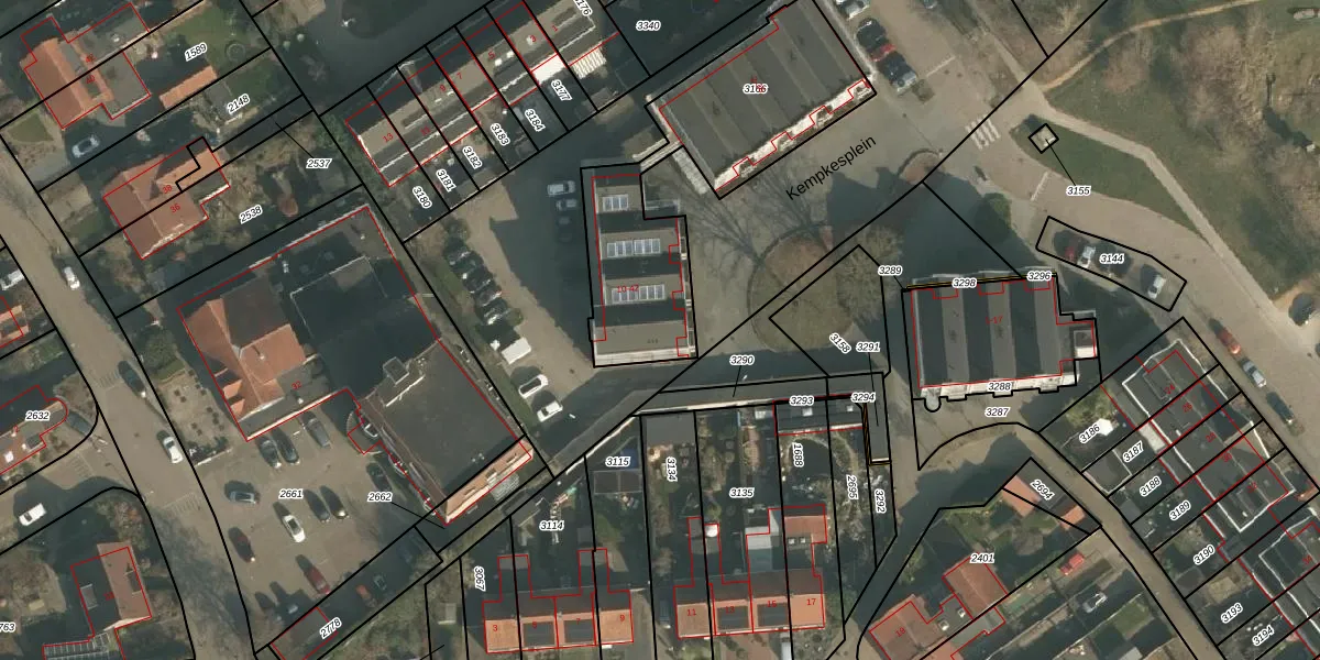 Kempkesplein 14 is gelegen op kadastraal perceel OOI00B3166. Deze kadastrale aanduiding is uniek en wordt gebruikt door het Kadaster om eigendomsrechten en andere zakelijke rechten vast te leggen. Het perceel maakt onderdeel uit van de kadastrale gemeente Ooij.