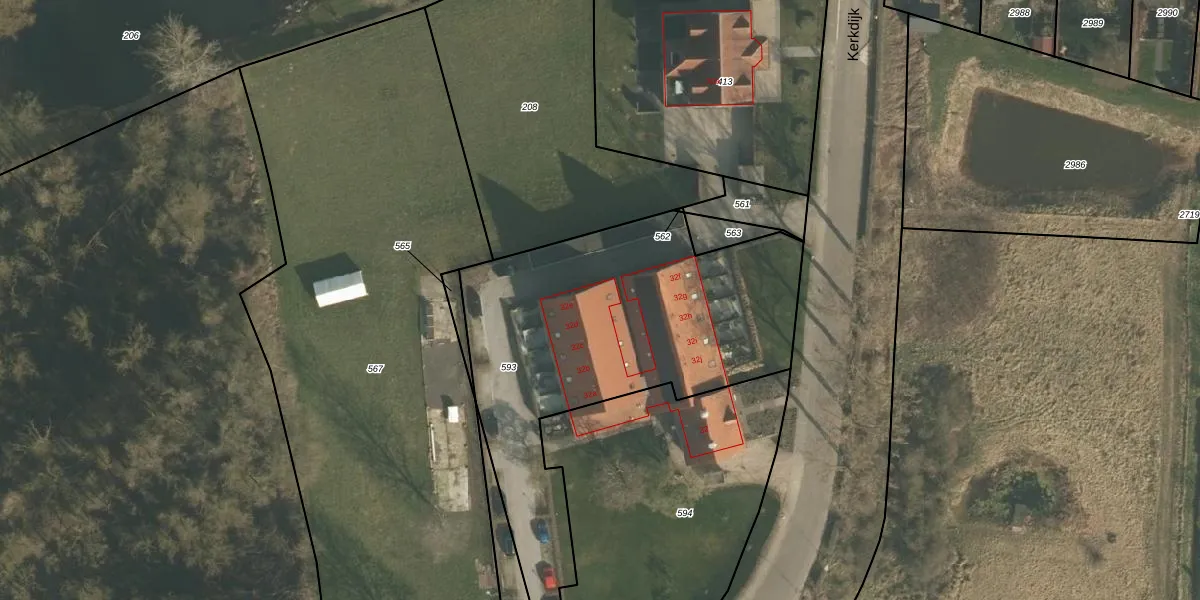 Kerkdijk 32-e is gelegen op kadastraal perceel OOI00F593. Deze kadastrale aanduiding is uniek en wordt gebruikt door het Kadaster om eigendomsrechten en andere zakelijke rechten vast te leggen. Het perceel maakt onderdeel uit van de kadastrale gemeente Ooij.