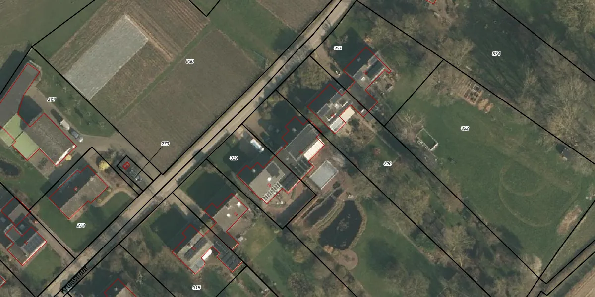 Het perceel waarop het adres ligt is OOI00-F-318. De afkorting 'OOI00' staat voor kadastrale gemeente Ooij. De gemiddelde perceelgrootte in Ooij is 8934,61 m². Dit perceel is kleiner: de perceeloppervlakte bedraagt 3030 m². Het kleinste perceel in de kadastrale gemeente is 0 m² groot. De grootste perceeloppervlakte is 68,6 ha. Dit is het enige adres dat aanwezig is op het perceel. In de Basisregistratie Kadaster (BRK) werden de grenzen van het perceel geregistreerd op 06-07-2006.