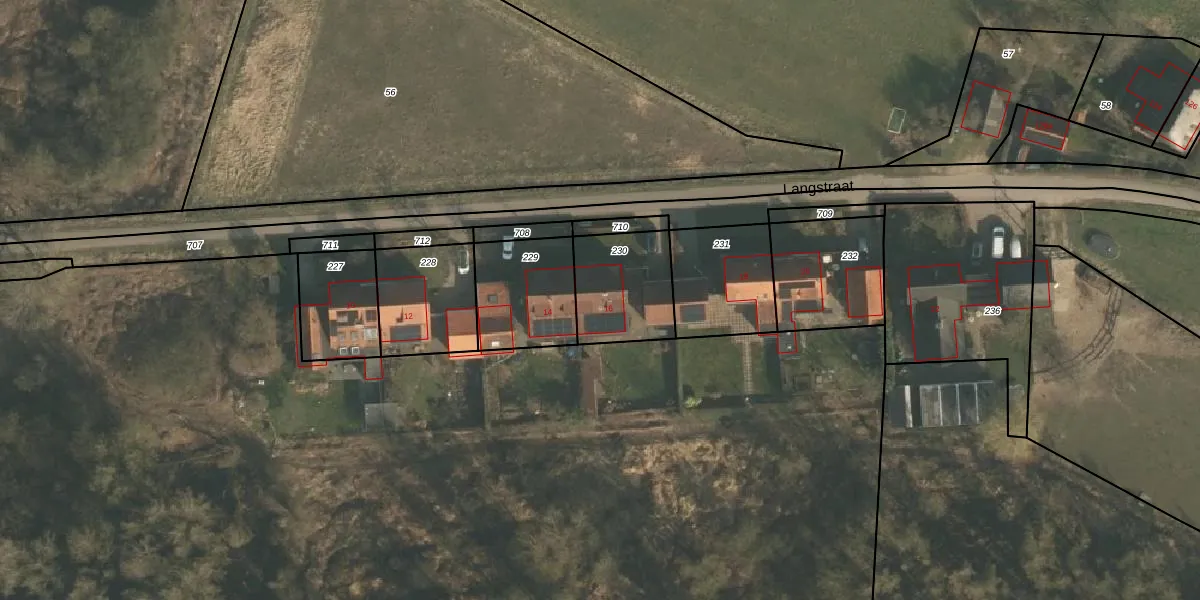 Langstraat 16 is gelegen op kadastraal perceel OOI00E230. Deze kadastrale aanduiding is uniek en wordt gebruikt door het Kadaster om eigendomsrechten en andere zakelijke rechten vast te leggen. Het perceel maakt onderdeel uit van de kadastrale gemeente Ooij.