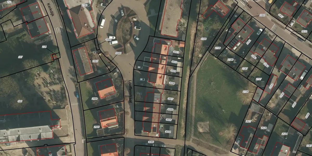 Loeffenstraat 35 is gelegen op kadastraal perceel OOI00B3008. Deze kadastrale aanduiding is uniek en wordt gebruikt door het Kadaster om eigendomsrechten en andere zakelijke rechten vast te leggen. Het perceel maakt onderdeel uit van de kadastrale gemeente Ooij.