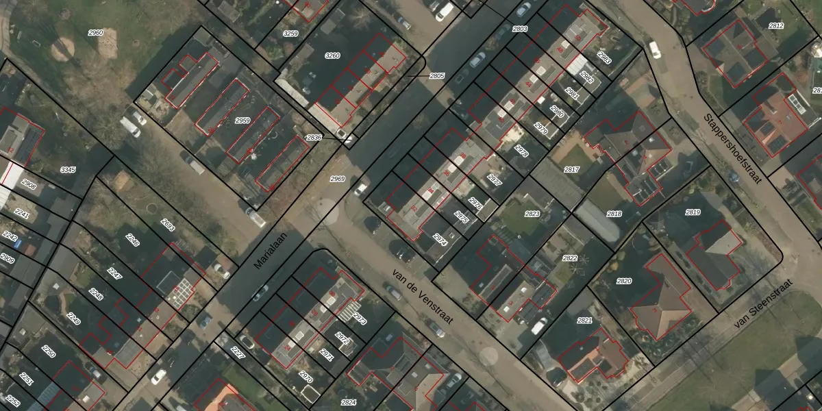 Marialaan 32 is gelegen op kadastraal perceel OOI00B2974. Deze kadastrale aanduiding is uniek en wordt gebruikt door het Kadaster om eigendomsrechten en andere zakelijke rechten vast te leggen. Het perceel maakt onderdeel uit van de kadastrale gemeente Ooij.