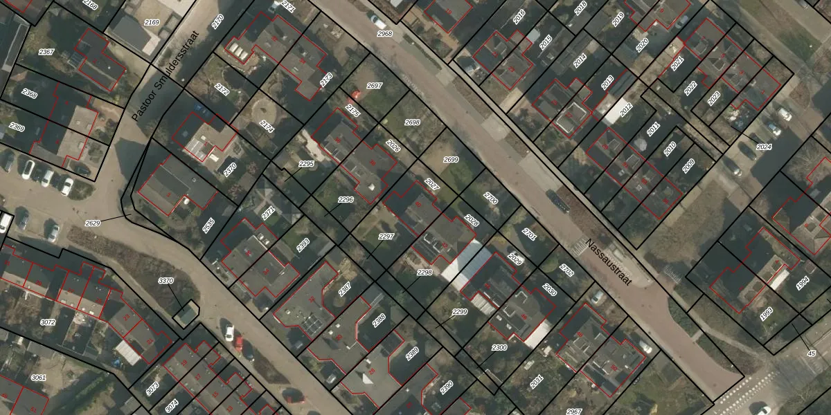 Nassaustraat 40 is gelegen op kadastraal perceel OOI00B2027. Deze kadastrale aanduiding is uniek en wordt gebruikt door het Kadaster om eigendomsrechten en andere zakelijke rechten vast te leggen. Het perceel maakt onderdeel uit van de kadastrale gemeente Ooij.