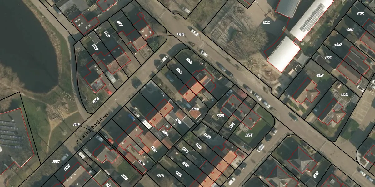 Het perceel waarop Prins Bernhardstraat 20 staat heeft een oppervlakte van 376 m². Dit is een groot perceel. De perceeloppervlakte wordt geregistreerd door het Kadaster. Gedetailleerde informatie over de maten van dit perceel kunt u vinden in het rapport Kadastrale kaart met maatvoering van Prins Bernhardstraat 20.