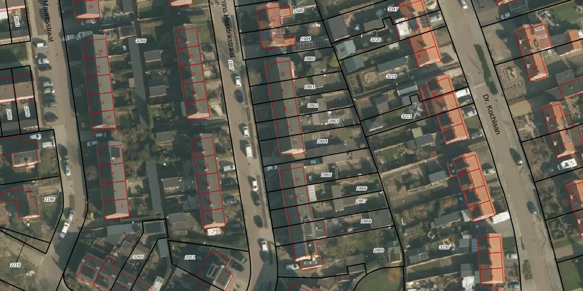 Het perceel waarop Prins Hendrikstraat 22 staat heeft een oppervlakte van 315 m². Dit is een groot perceel. De perceeloppervlakte wordt geregistreerd door het Kadaster. Gedetailleerde informatie over de maten van dit perceel kunt u vinden in het rapport Kadastrale kaart met maatvoering van Prins Hendrikstraat 22.