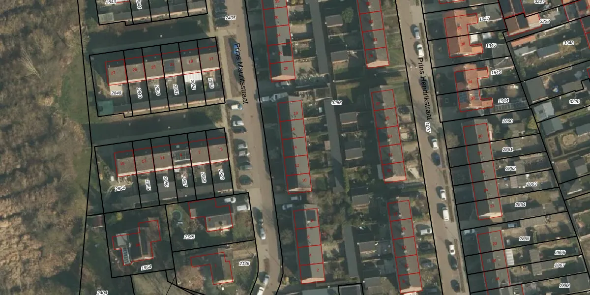 Prins Mauritsstraat 14 is gelegen op kadastraal perceel OOI00B3266. Deze kadastrale aanduiding is uniek en wordt gebruikt door het Kadaster om eigendomsrechten en andere zakelijke rechten vast te leggen. Het perceel maakt onderdeel uit van de kadastrale gemeente Ooij.