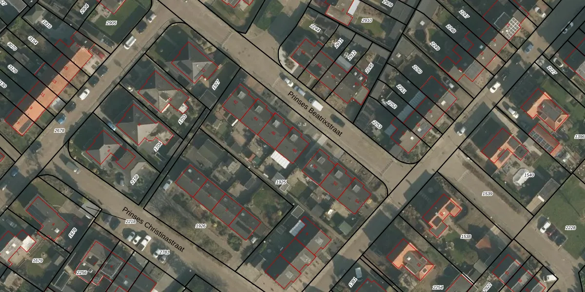 Het perceel waarop Prinses Beatrixstraat 48 staat heeft een oppervlakte van 2275 m². Dit is een zeer groot perceel. De perceeloppervlakte wordt geregistreerd door het Kadaster. Gedetailleerde informatie over de maten van dit perceel kunt u vinden in het rapport Kadastrale kaart met maatvoering van Prinses Beatrixstraat 48.