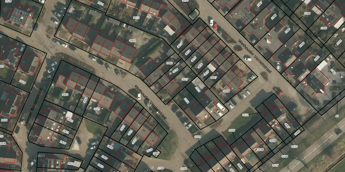 Wethouder Verrietstraat 59 is gelegen op kadastraal perceel OOI00B3127. Deze kadastrale aanduiding is uniek en wordt gebruikt door het Kadaster om eigendomsrechten en andere zakelijke rechten vast te leggen. Het perceel maakt onderdeel uit van de kadastrale gemeente Ooij.