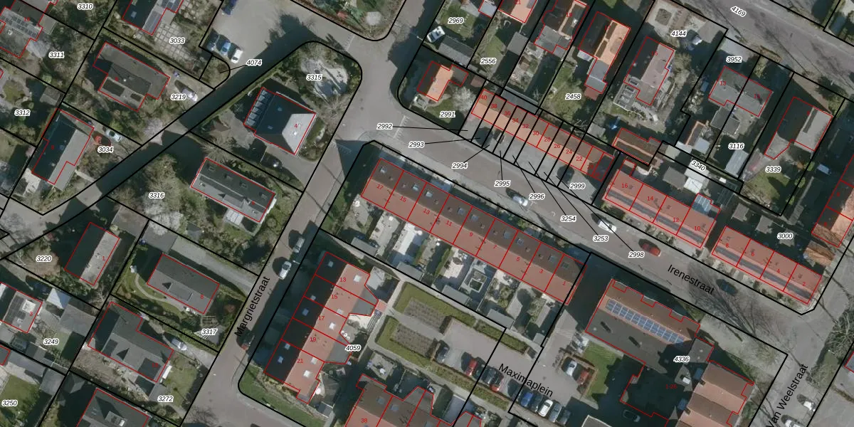 Het perceel waarop Irenestraat 13 staat heeft een oppervlakte van 3130 m². Dit is een zeer groot perceel. De perceeloppervlakte wordt geregistreerd door het Kadaster. Gedetailleerde informatie over de maten van dit perceel kunt u vinden in het rapport Kadastrale kaart met maatvoering van Irenestraat 13.