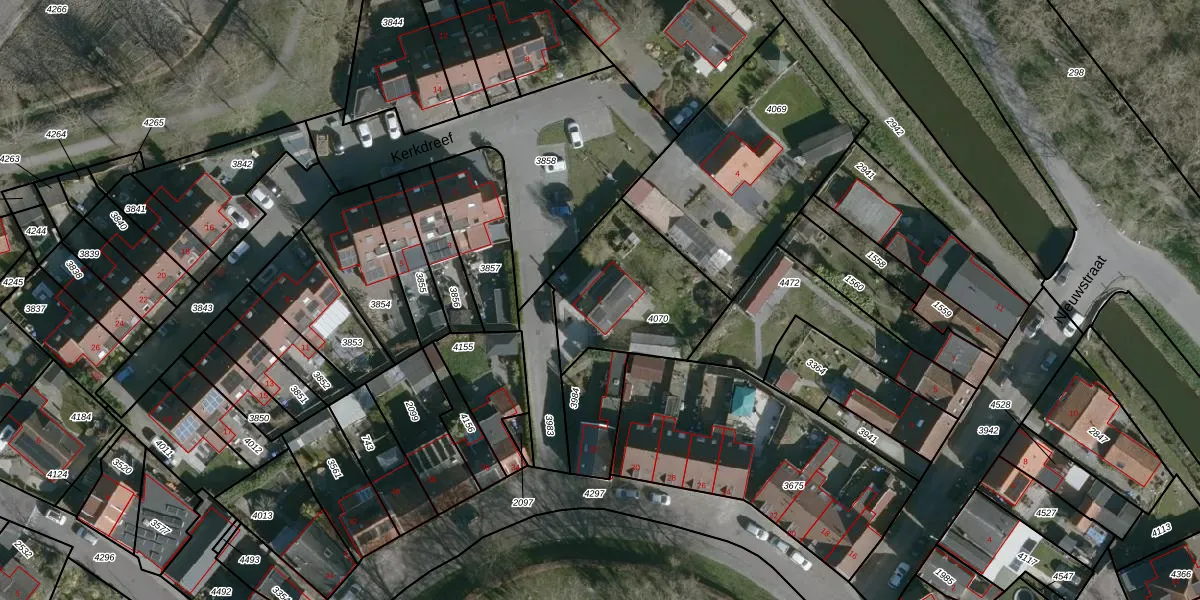 Gebruik de zoekbalk of klik op een perceel voor informatie over de adressen binnen dit perceel.